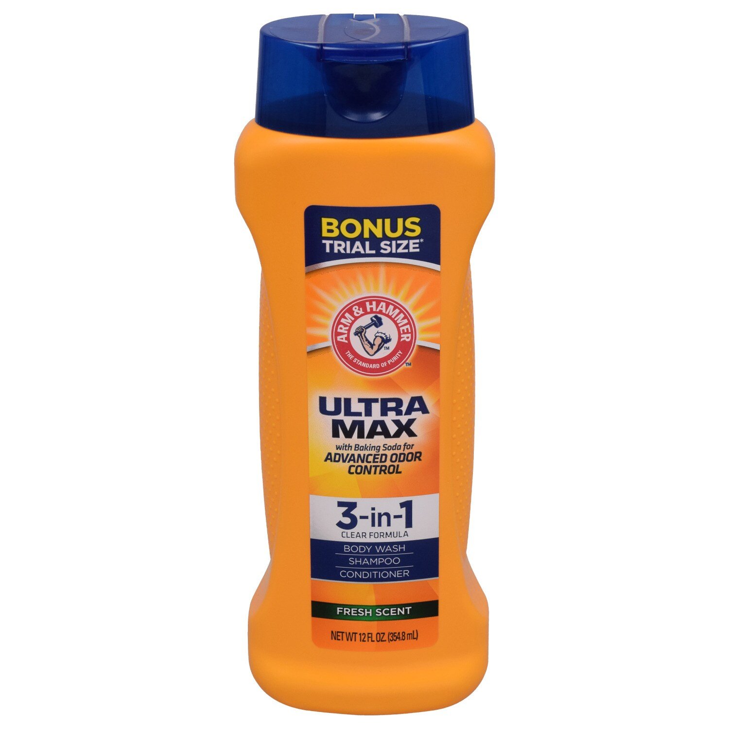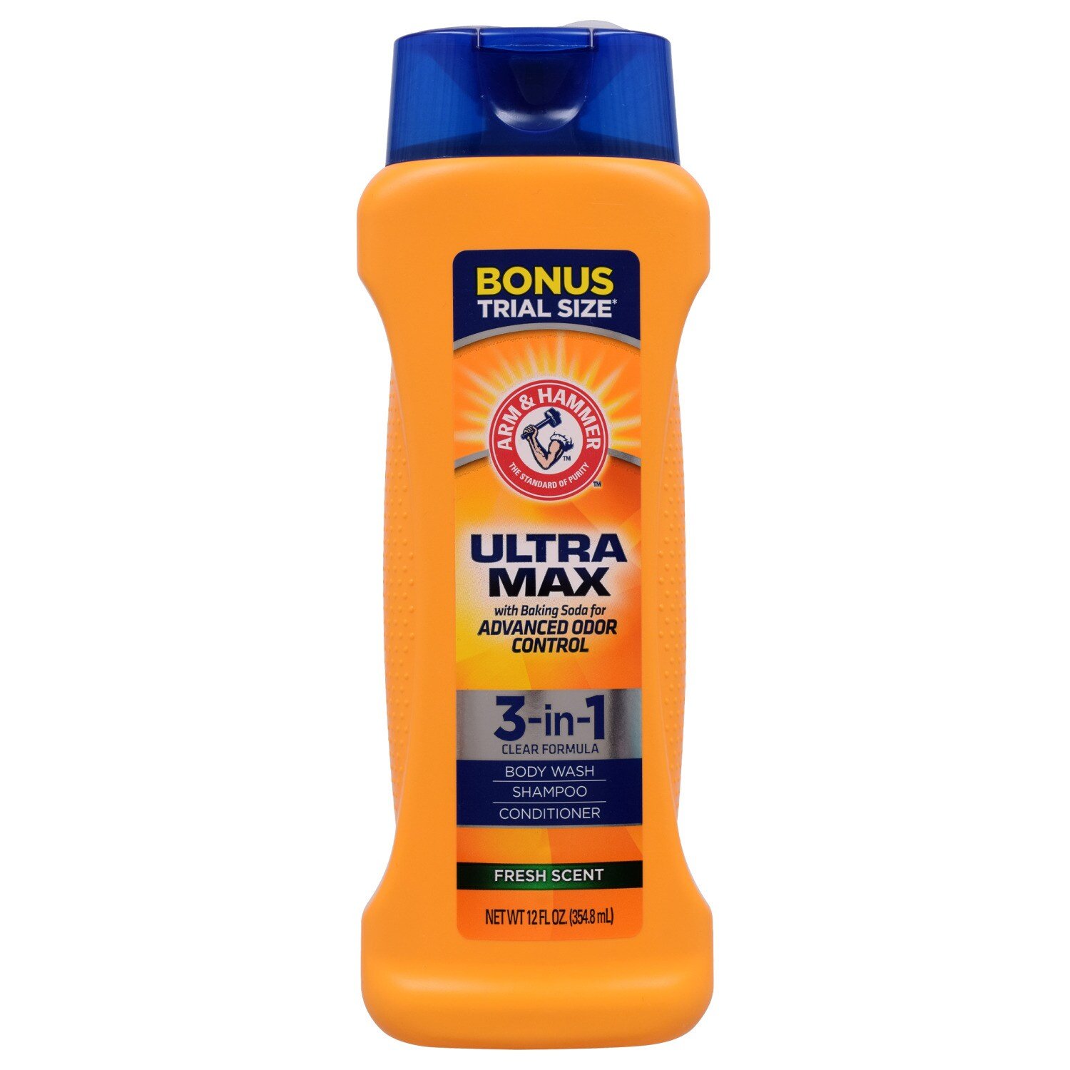Arm & Hammer™ Ultra Max 3-in-1 Fresh Scented Body Wash, Shampoo, and Conditioner gives you all in one! Clean from head to toe! The formula has advanced odor control due to the baking soda infused into the formula. Ideal for daily use at home or gyms, and to donate to care facilities or community centers.