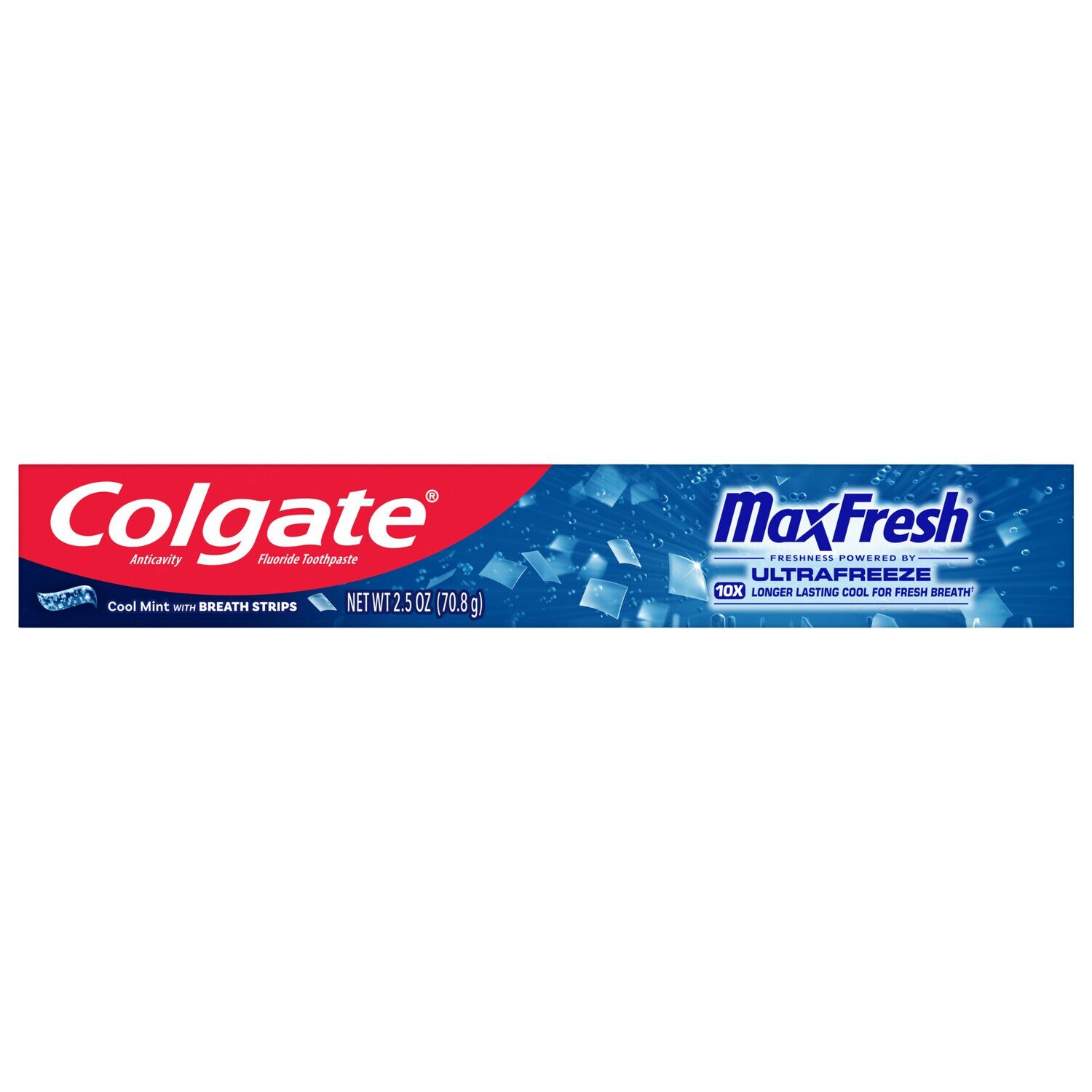 Release an instant blast of freshness while you’re on the go with Colgate MaxFresh Cool Mint Toothpaste. Powered by Ultrafreeze, this invigorating travel-size peppermint toothpaste offers 10X longer-lasting cool for fresh breath*. This minty travel toothpaste, with the help of Ultrafreeze and hundreds of mini breath strips, is bursting with freshness that lasts for hours. In addition, this Colgate MaxFresh mini toothpaste comes in a refreshing Cool Mint flavor that invigorates the brushing experience. However, it’s more than just a travel size toothpaste for bad breath, Colgate MaxFresh Cool Mint Toothpaste is also a fluoride toothpaste and helps prevent cavities. With its refreshing Cool Mint flavor and hundreds of mini breath strips, Colgate MaxFresh Travel Toothpaste leaves your breath feeling fresh for hours. Plus, the fluoride-based formula helps fight cavities. Get long-lasting fresh breath with Colgate MaxFresh Cool Mint Toothpaste. *vs. a regular Colgate fluoride toothpaste