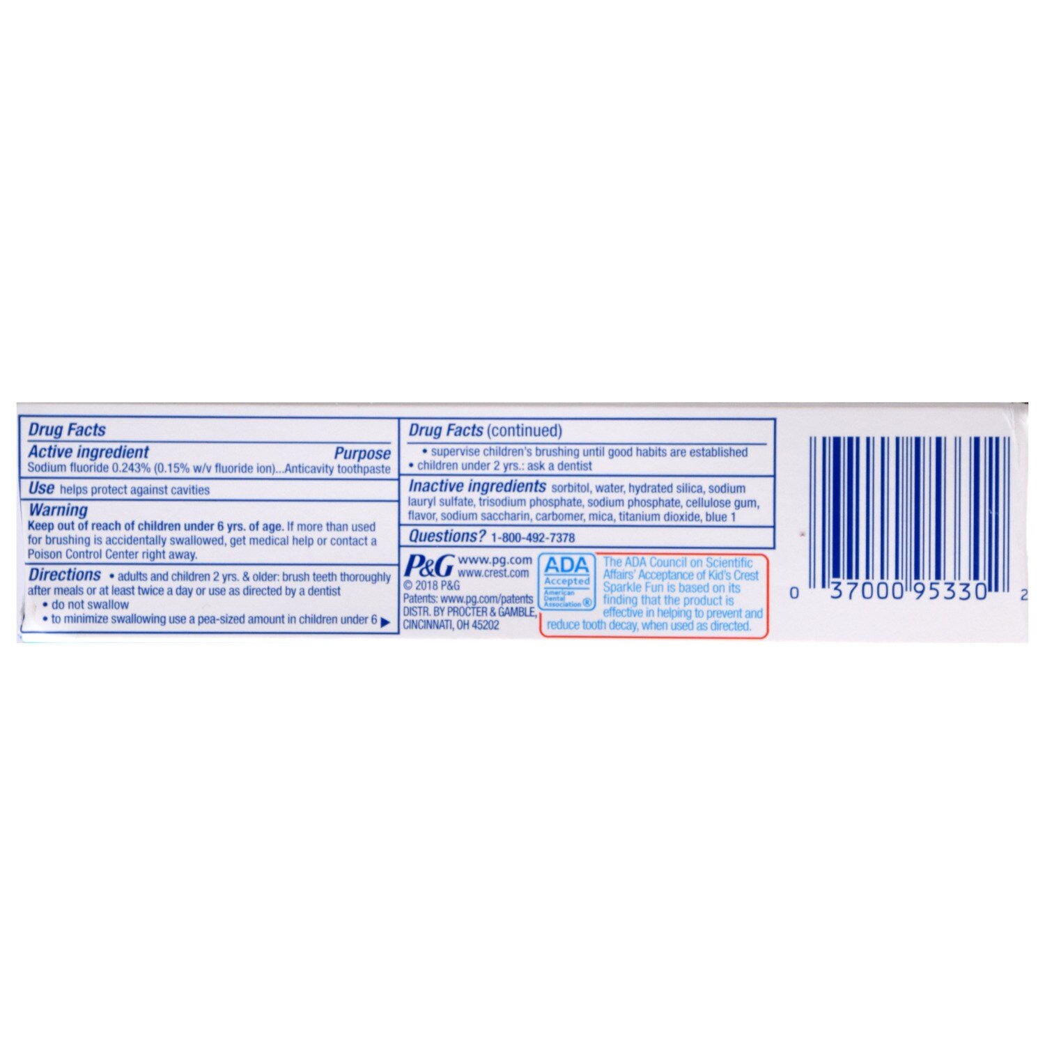 Crest Kids Cavity Protection Sparkle Fun Toothpaste, 2.2 oz. Tubes