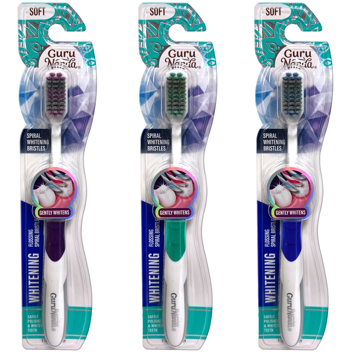 Let your teeth experience whiter whites with the Gurunanda Spiral Whitening Bristle Toothbrush! These affordable whitening bristles get between teeth to dislodge plaque and food without damaging your gums. This soft brush removes stains, giving you a whiter smile with larger handles without strain.